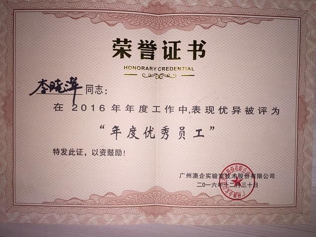 - 2016年度优秀员工荣誉奖