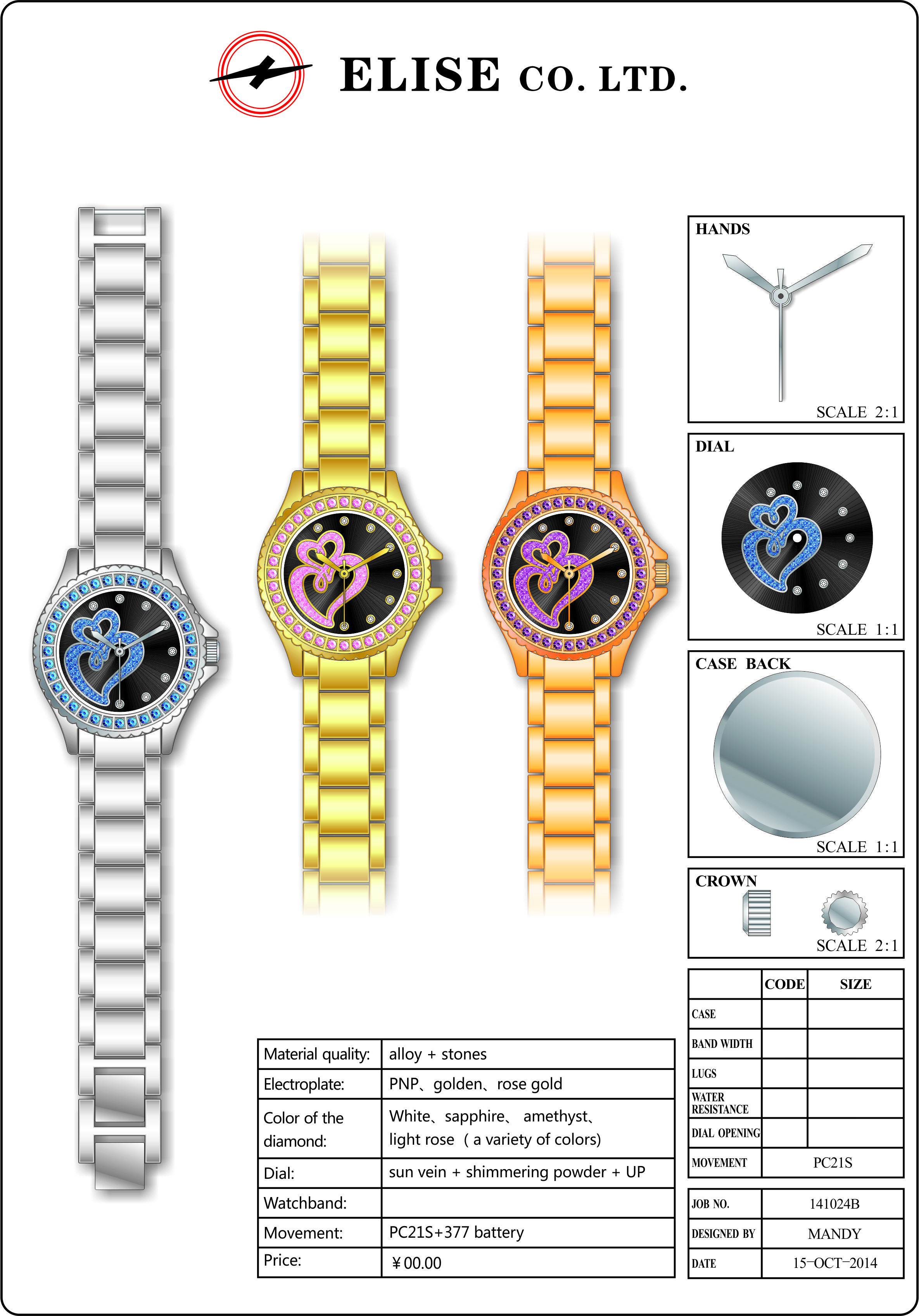 - 负责手表的外观(包括字面)和结构的设计,以及根据客户订单制定出图.文兼备的详细生产单。